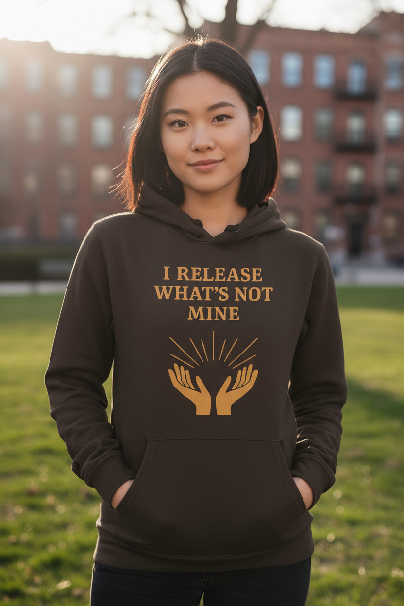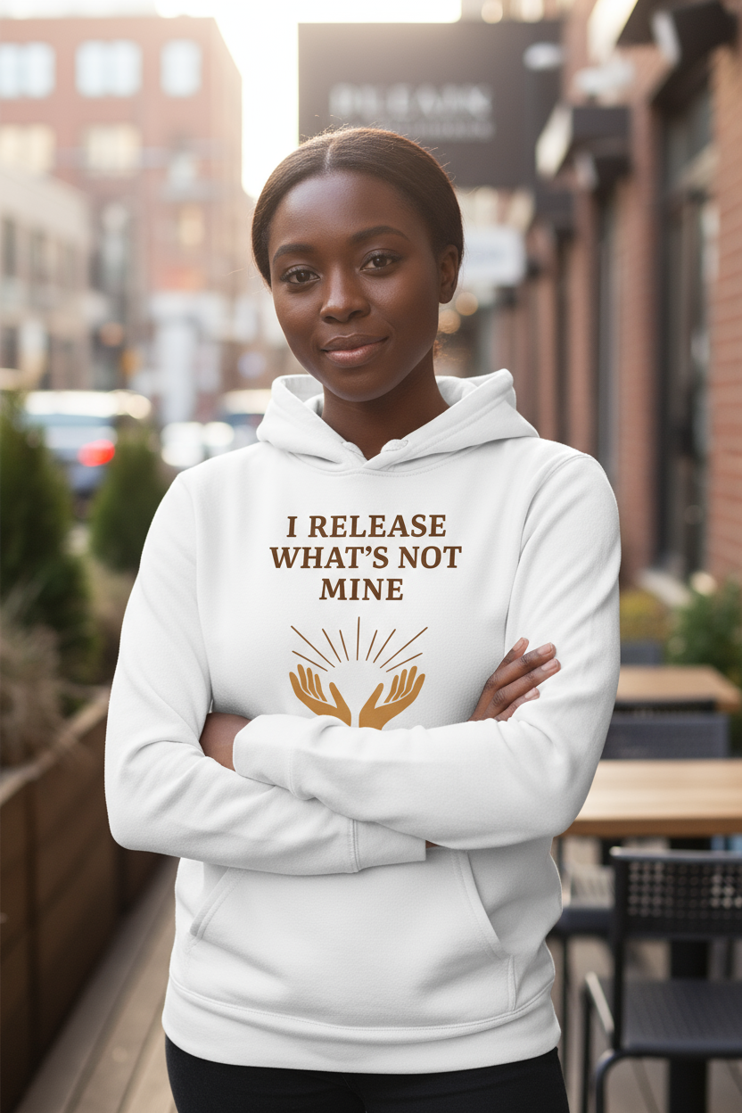 Wrap yourself in peace with the “I Release What’s Not Mine” Hoodie — a piece designed for emotional balance and mindful living.