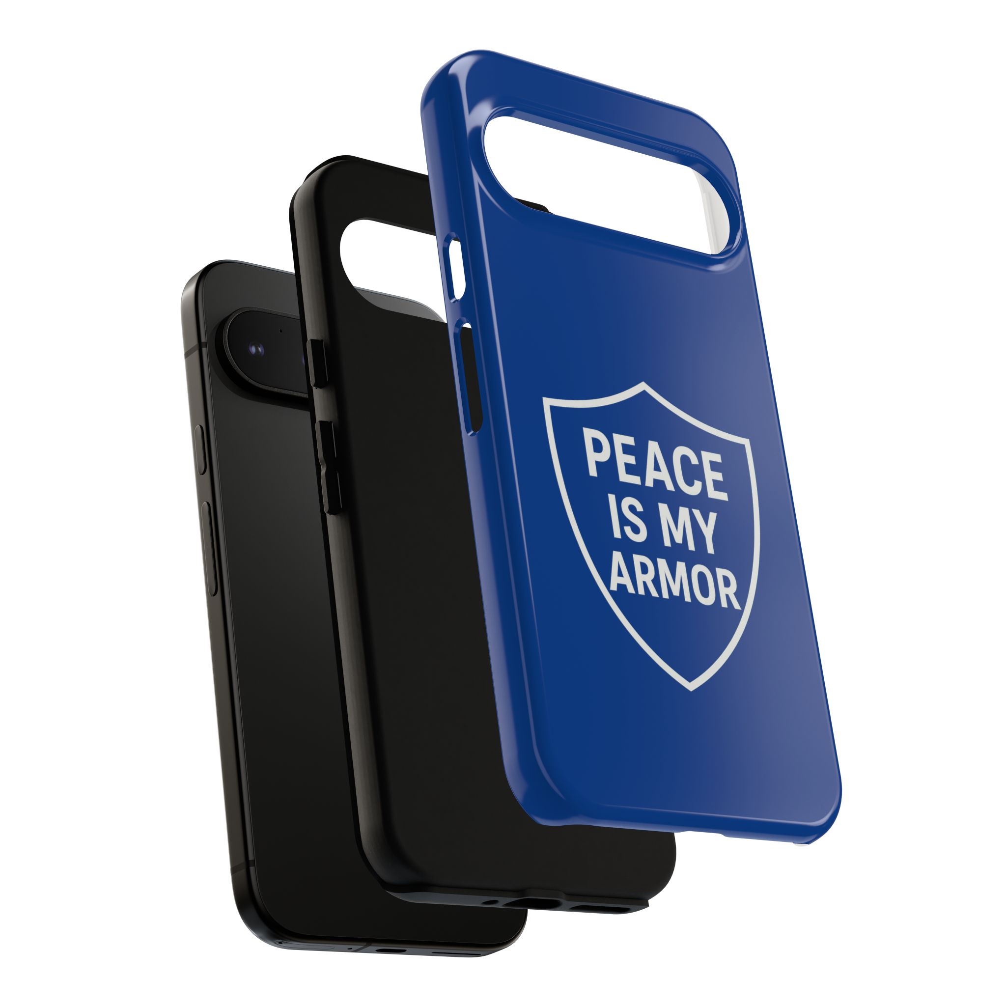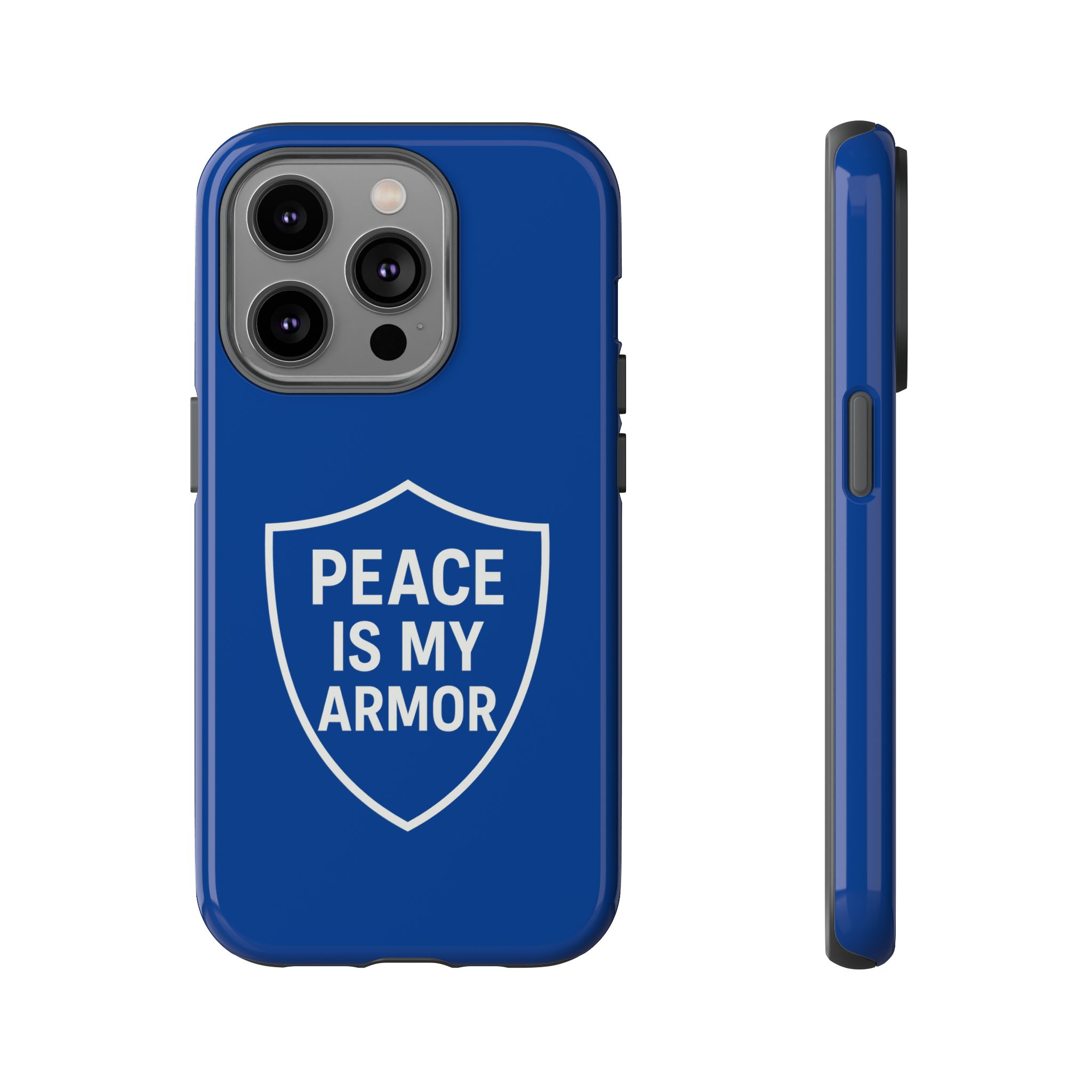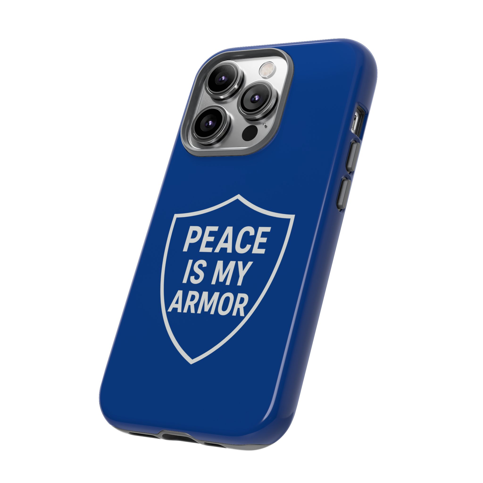 Introducing a striking phone case that perfectly blends style and functionality. This durable protective phone case features a bold shield design with the empowering phrase ‘PEACE IS MY ARMOR.’ Crafted for individuals who value both aesthetics and protection, it resonates deeply with those who seek to express their beliefs confidently. Ideal for everyday use, this phone case keeps your device safe while making a statement. Perfect for gifting during holidays such as Christmas, birthdays, or just as a thoughtful gesture to a friend or loved one who champions positivity and strength in their lives. Embrace a vibe of resilience and peace wherever you go, with a sleek case that complements your unique personality.